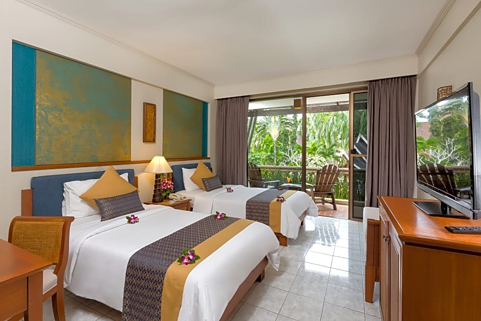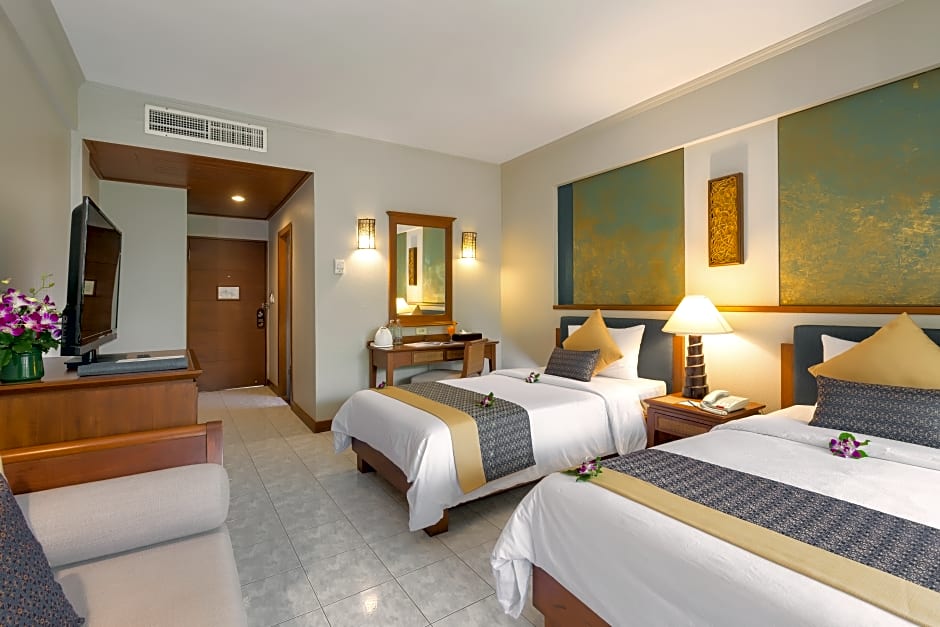 DELUXE HOTEL is 323 square feet and includes either a double bed 131-150 width or 2 single beds 80-130 width plus terrace.